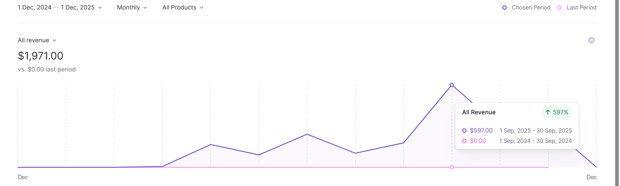 Reddit has also been helpful. I post updates about progress and milestones. People respond with questions, ideas and feedback, and every time I share these updates, I notice a spike in sales. One post in September tripled my usual MRR.
